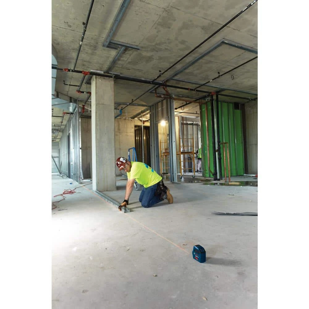The Bosch GLL 50 Self-Leveling Cross-Line Laser Kit features a laser with vertical, horizontal and cross-line modes that projects 2-lines independently or together. This permits a broad array of alignment and leveling applications. The laser lines are visible up to 50 ft., with an accuracy of plus/minus 1/8 in. at 33 ft. The included BM3 Positioning Device offers quick setup in ceiling grid applications and free-standing mode with its retractable feet. This laser is built with sturdy over-molded construction for durability.
