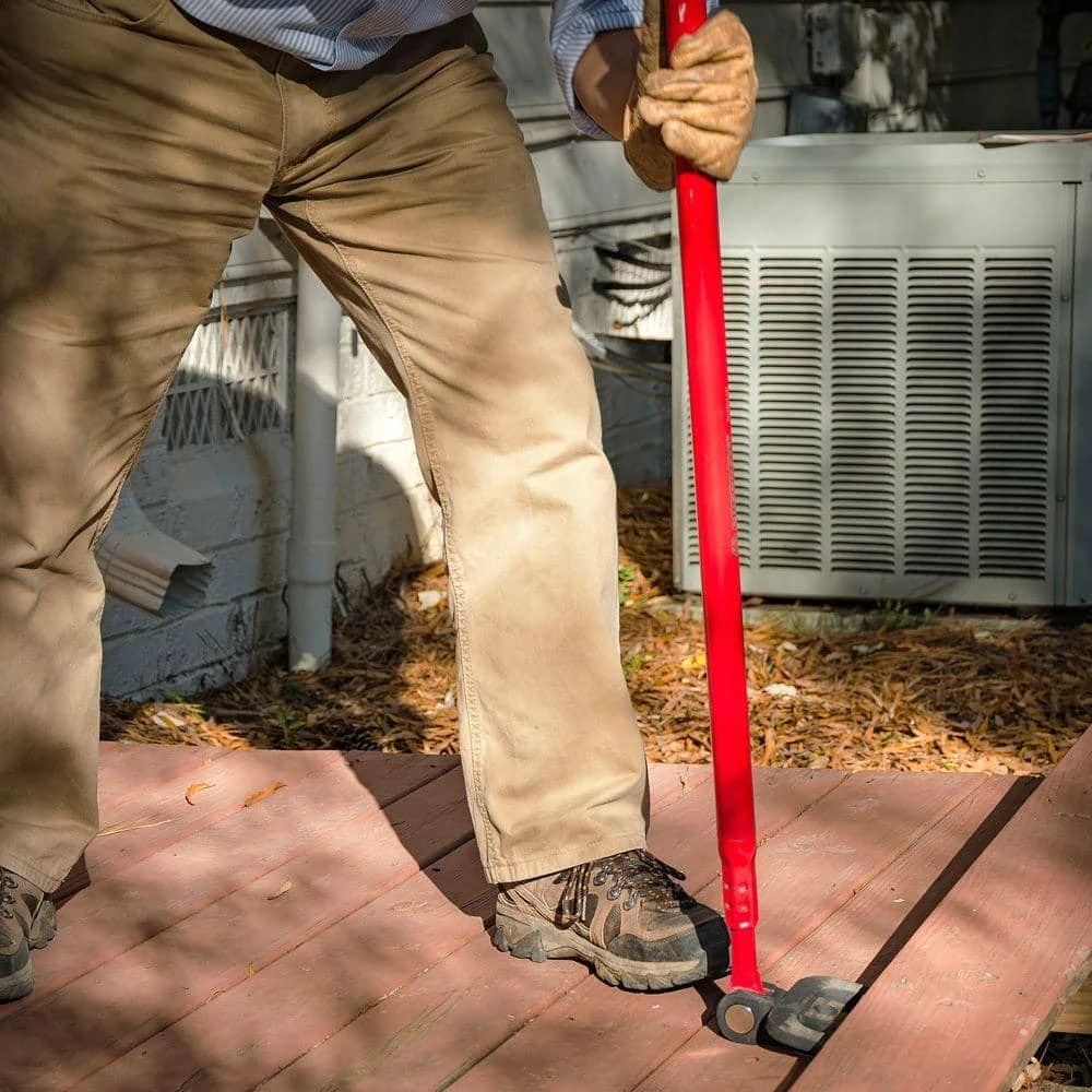 Everyone can count on the Bull Bar from Crescent for all of their deck projects. Unlike similar tools, the innovative 180° indexing head changes positions, allowing the user to easily select the best angle for maximum leverage and access. The Bull Bar has a double fork design with teeth that grip the edge of the board, decreasing slippage and providing a balanced lift on both sides of the nail. Closed positions offer fast action for shorter pulls. Open positions allow for powerful downward force on large planks and are an ideal solution for ground-level work. Additionally, a robust center nail puller will remove ring shank nails and stubborn long nails with better balance and increased leverage.