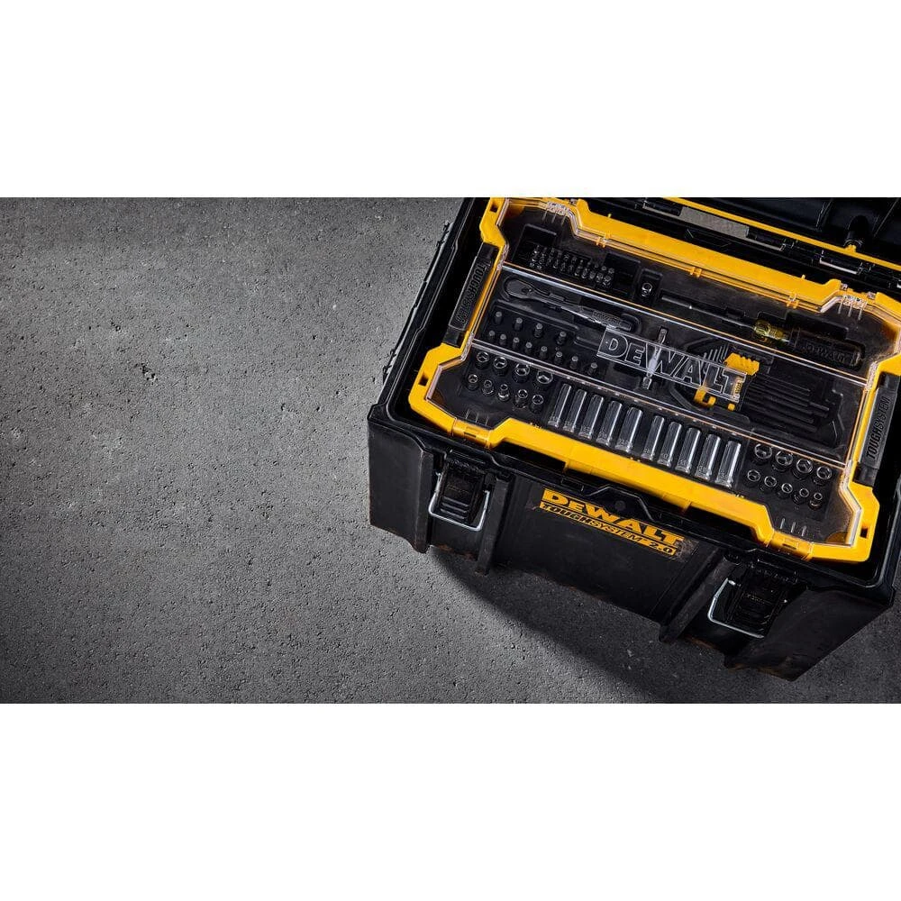 This 131-Piece Mechanics Set includes a wide selection of sockets, socket accessories, bits and Hex keys to help complete a variety of tasks. The set is sold inside the 2 TOUGHSYSTEM 2.0 Shallow Tool Trays, along with a molded inserts and compatible lids for optimal storage and transportation. This set includes a durable 72-tooth ratchet with 5° arc swing for maneuverability in restricted areas. Full-polish chrome provides corrosion resistance and gives these tools a classic look.