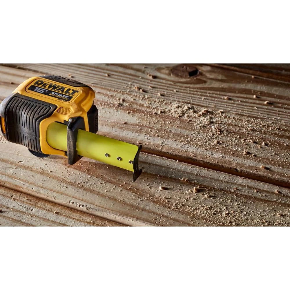 The DEWALT atomic tape measures is where size meets performance. Our new line of atomic tape measures delivers on durability and reach inside a compact design that gives you more control when measuring. DEWALT’s first integrated finger brake gives you better blade control to get the job done more quickly and efficiently. 13 ft. of maximum reach ensures you can get the job done on your own, and the fractional blade graphics help to make quick and easy measurements.