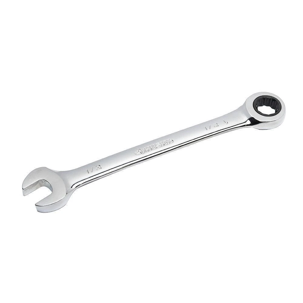 Husky’s ratcheting combination wrenches feature a 12-point, 72-tooth ratcheting box end that needs only 5° to engage fasteners. Each wrench is manufactured from Chrome Alloy steel and heat treated for added strength and wear protection; providing durability for a lifetime of hard use. Their polished chrome finish resist rust and corrosion and easily wipes clean of oil and dirt. Both the open and box end features chamfered lead ins for quick and easy placement onto fasteners every time.