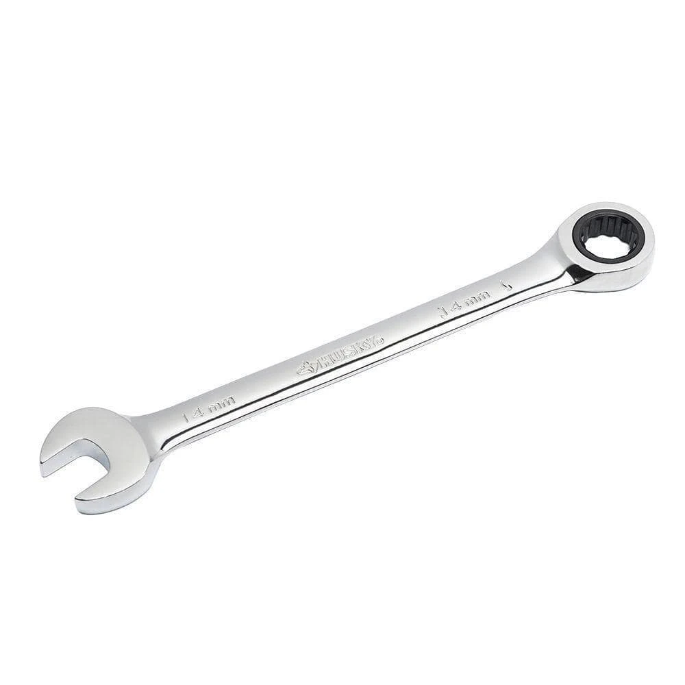 Husky’s ratcheting combination wrenches feature a 12-point, 72-tooth ratcheting box end that needs only 5 to engage fasteners. Each wrench is manufactured from Chrome Alloy steel and heat treated for added strength and wear protection; providing durability for a lifetime of hard use. Their polished chrome finish resist rust and corrosion and easily wipes clean of oil and dirt. Both the open and box end features chamfered lead ins for quick and easy placement onto fasteners every time.