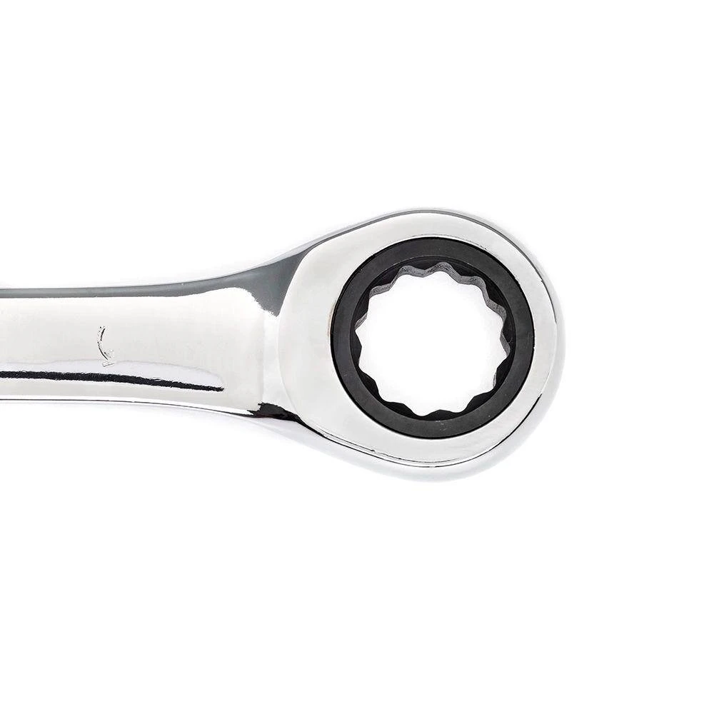 Husky’s ratcheting combination wrenches feature a 12-point, 72-tooth ratcheting box end that needs only 5° to engage fasteners. Each wrench is manufactured from Chrome Alloy steel and heat treated for added strength and wear protection; providing durability for a lifetime of hard use. Their polished chrome finish resist rust and corrosion and easily wipes clean of oil and dirt. Both the open and box end features chamfered lead ins for quick and easy placement onto fasteners every time.