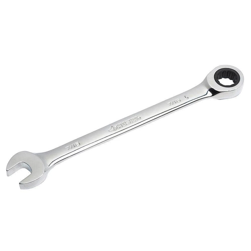 Husky’s ratcheting combination wrenches feature a 12-point, 72-tooth ratcheting box end that needs only 5° to engage fasteners. Each wrench is manufactured from Chrome Alloy steel and heat treated for added strength and wear protection; providing durability for a lifetime of hard use. Their polished chrome finish resist rust and corrosion and easily wipes clean of oil and dirt. Both the open and box end features chamfered lead ins for quick and easy placement onto fasteners every time.