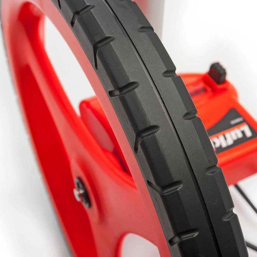 Suitable for measuring vertical, horizontal or curved surfaces, the Lufkin Large Contractors Measuring Wheel displays surface dimensions in inches and feet for quick and accurate distance calculations. It features a 12-1/2 in. wheel with rubber tire for superb traction on job sites with uneven terrain or long indoor expanses. The analog counter dial calibrated to the wheel rolls over to zero after reaching 10,000 ft.