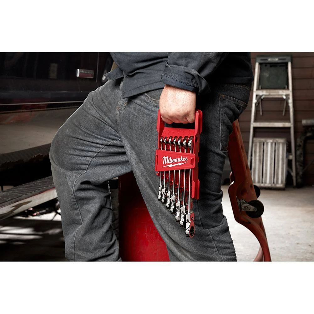 - Kit includes: one 48-22-9429 144-position flex-head ratcheting combination wrench set sae (7-piece) and one 48-22-2710 screwdriver set (10-piece)