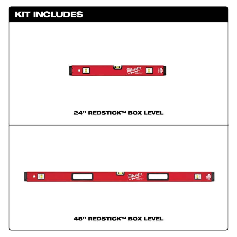 The Milwaukee REDSTICK Box Levels provide industry-leading performance with best-in-class vial readability and frame durability. The ALL-METAL BACKBONE provides the strongest, most durable frame ensuring long-life accuracy. SHARPSITE Vial Technology provides best-in-class readability with a magnified bubble and high-visibility vial spirit. The Milwaukee REDSTICK Box Levels are backed by a Lifetime Accuracy Guarantee and a Limited Lifetime Warranty.