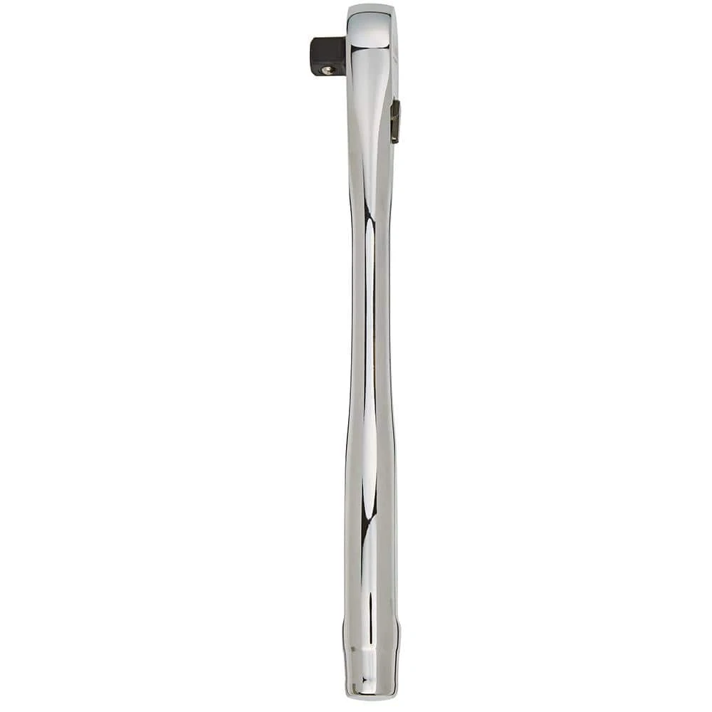 Designed from the ground up, this 57-piece 3/8 in. drive ratchet and socket set offers better access in tight spaces and maximum tool strength. The 90-tooth ratchet tool offers 4° of arc swing and a slim profile design, so you can work in tighter spaces. The innovative, wrench-compatible socket design has 4 parallel flats to help prevent rolling. Optimized socket geometry additionally helps reduce bolt rounding and stripping. Find each socket size stamped into the flats for easy-to-read visibility. This kit includes a removable inner tray and is designed to be stored long-term in a steel storage chest. It also comes with a durable carrying case for ultimate portability. The 3/8 in. Drive 12 in. Ratchet offers 4° of arc swing, allowing access to work in tighter spaces. The extended handle length provides users with increased leverage for stubborn nuts and bolts with a slim profile design and a flush directional lever for better accessibility. The all-chrome finish provides the ratchet with easy-cleaning. The ratchet and socket set is backed by a Mechanics Hand Tools Lifetime Guarantee.