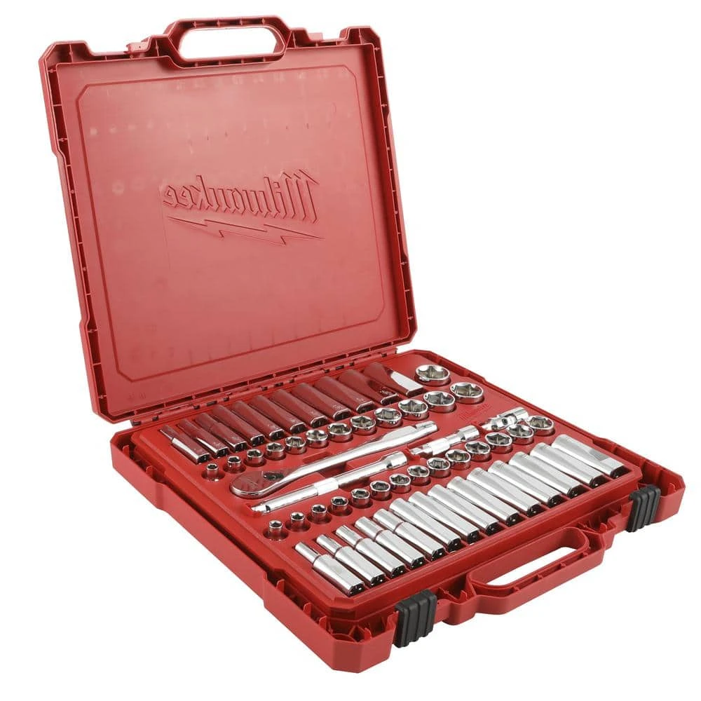 - Includes: standard sockets: 1/4 in., 5/16 in., 3/8 in., 7/16 in., 1/2 in., 9/16 in., 5/8 in., 11/16 in., 3/4 in., 13/16 in., 7/8 in., 15/16 in., 1 in., 6 mm, 7 mm, 8 mm, 9 mm, 10 mm, 11 mm, 12 mm, 13 mm, 14 mm, 15 mm, 16 mm, 17 mm, 18 mm, 19 mm deep well sockets: 1/4 in., 5/16 in., 3/8 in., 7/16 in., 1/2 in., 9/16 in., 5/8 in., 11/16 in., 3/4 in., 13/16 in., 7/8 in., 6 mm, 7 mm, 8 mm, 9 mm, 10 mm, 11 mm, 12 mm, 13 mm, 14 mm, 15 mm, 16 mm, 17 mm, 18 mm, 19 mm accessories: 3 in. extension, 6 in. extension, universal swivel 90-tooth ratchet, and 12 in. extended ratchet