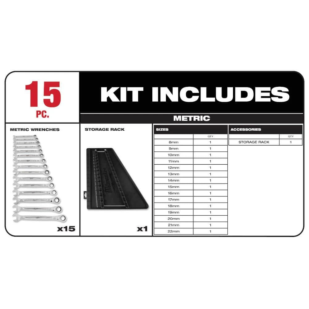 The MILWAUKEE 15-Piece Metric Ratcheting Combination Wrench Set and 6-Piece Screwdriver Set have visible ID markings for easy tool identification. The ratcheting combination wrench set offers a 2.5° of arc swing for efficient work in tight spaces and MAX BITE for 25% more torque and better grip force, innovative I-Beam Handle Design allows superior user comfort, even while applying high torque. Milwaukee screwdrivers have comfortable tri-lobe handles, wrench-ready hex shanks, and magnetic tips for comfort and efficiency on the jobsite. Milwaukee Tool stands behind their products offering a Lifetime Warranty on the combination wrench set and a Limited Lifetime Warranty on the screwdriver set.