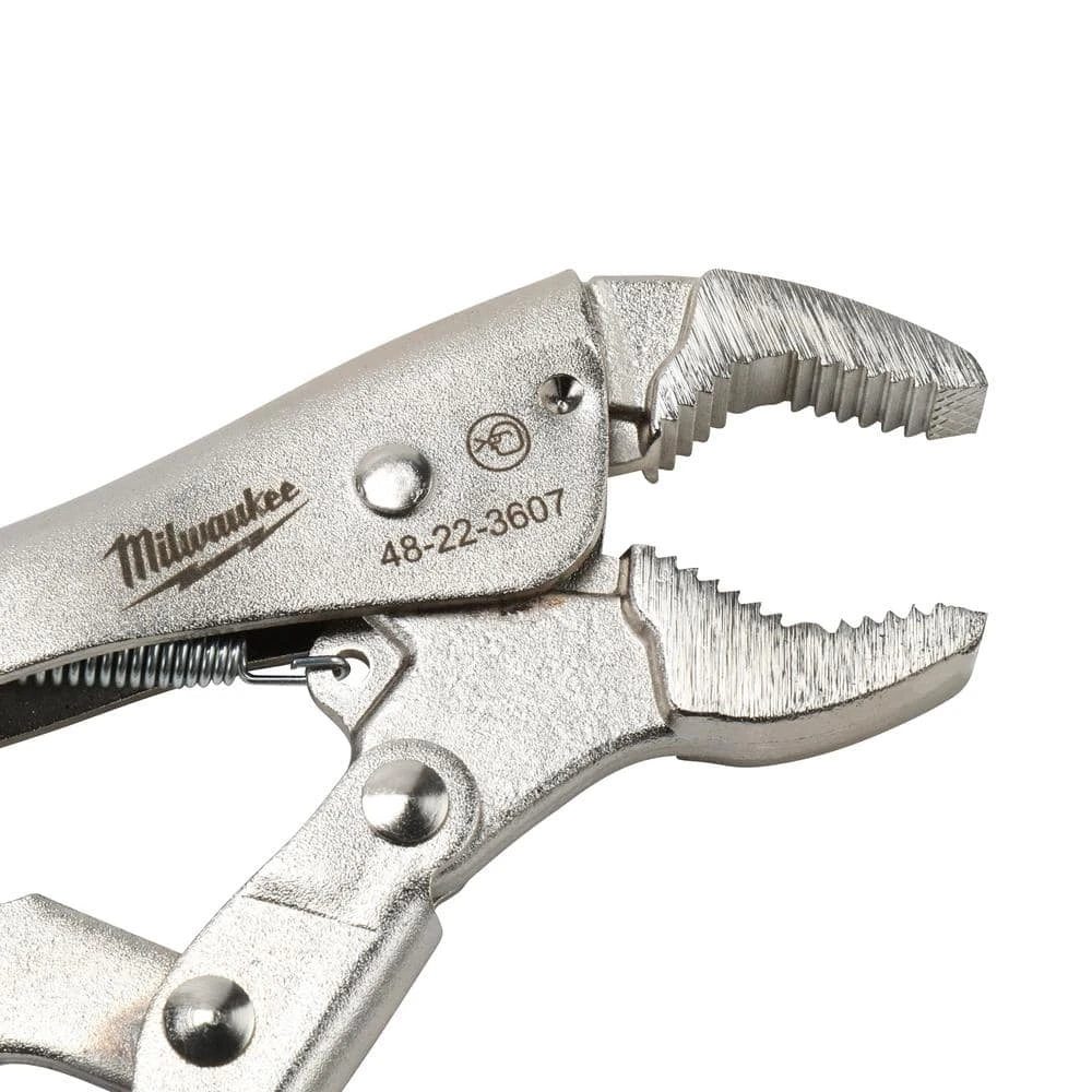 - Includes: (1) 5 in. Curved Jaw (48-22-3422), (1) 7 in. Curved Jaw (48-22-3421), (1) 7 in. TORQUE LOCK MAXBITE Curved Locking Pliers (48-22-3607),(1) 10 in. TORQUE LOCK MAXBITE Curved Locking Pliers (48-22-3610), (1) 7 in. TORQUE LOCK Straight Jaw Locking Pliers (48-22-3507), (1) 10 in. TORQUE LOCK Straight Jaw Locking Pliers (48-22-3510), (1) 6 in. TORQUE LOCK Long Nose Locking Pliers (48-22-3506), (1) 9 in. Long Nose (48-22-3509), (1) 11 in. TORQUE LOCK LOCKING C-Clamp with Regular Jaws (48-22-3531),(1) 6 in. TORQUE LOCK LOCKING C-Clamp with Regular Jaws (48-22-3532)