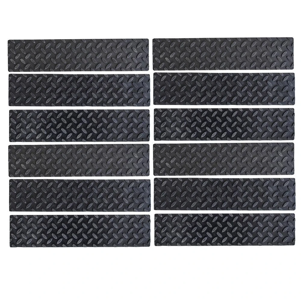 - Rubber treads measure 17 in. long by 4 in. wide, 12 individual step covers are included in the box