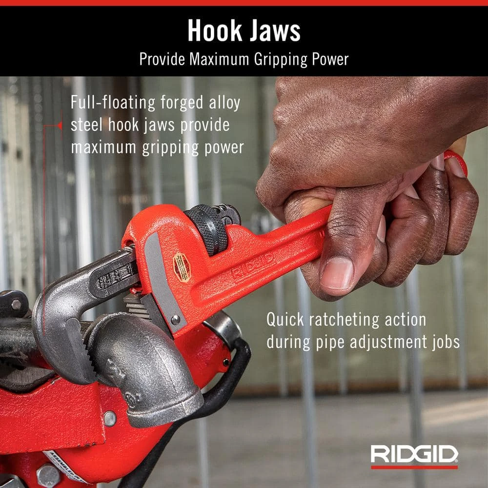 - Full-floating forged alloy steel hook jaws provide maximum gripping power and quick ratcheting action during pipe adjustment jobs