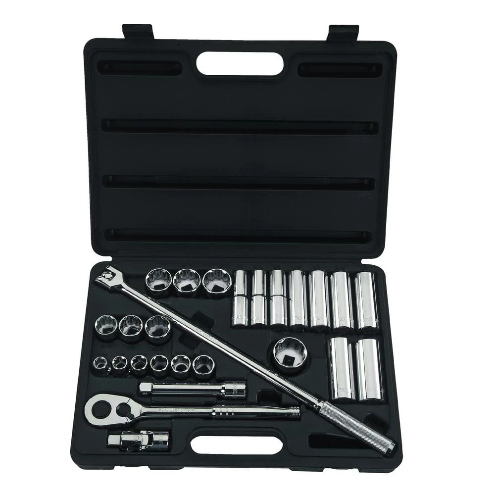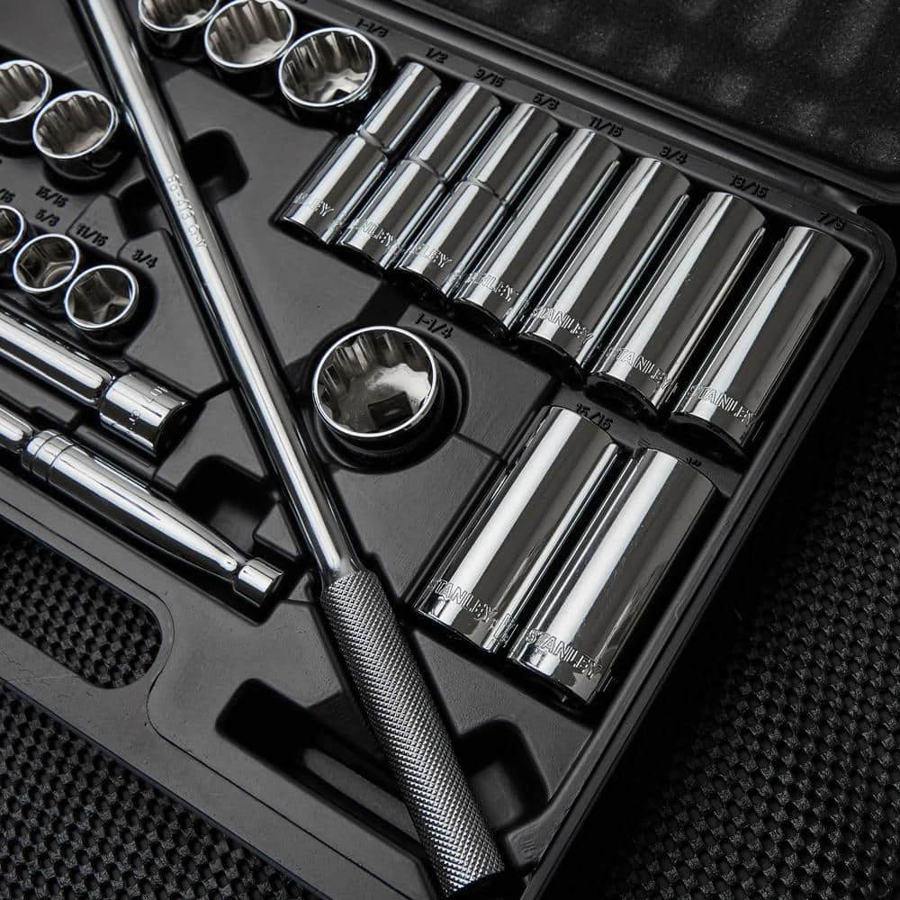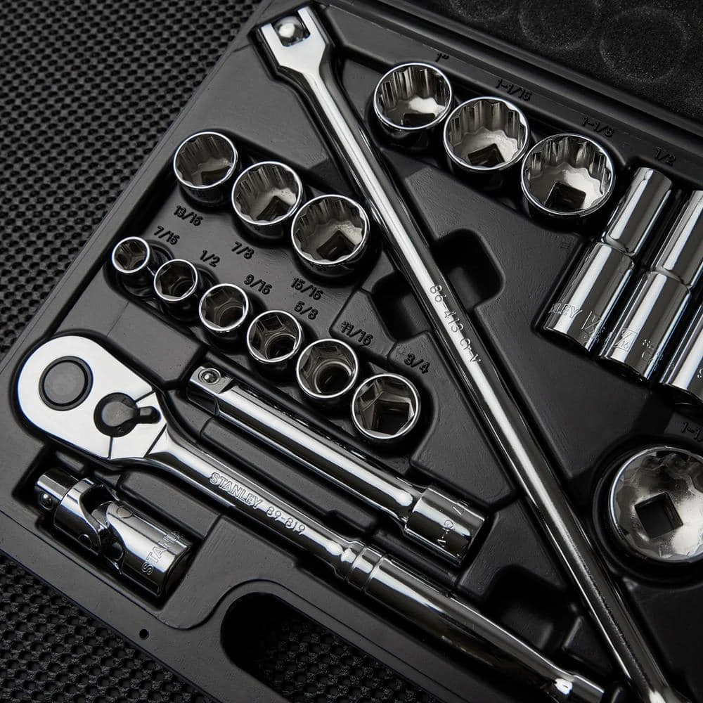 With Stanley, you can be sure you have the right tool to get the job done. Stanley’s 26 piece 1/2 in. Drive 6/12 Point Socket Set (SAE) includes a variety of sizes. This set is perfect for any shop or garage.
