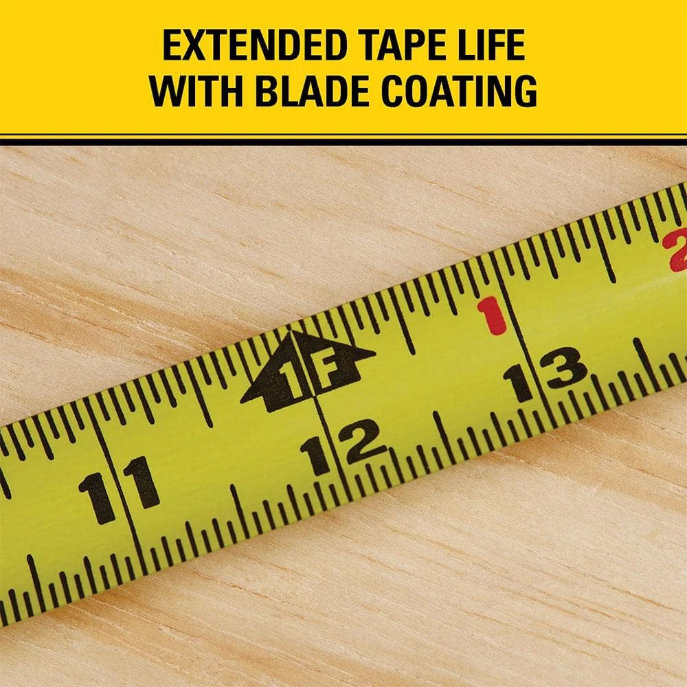 - 16 in. and 19.2 in. stud-center markings on tape blade for framing purposes