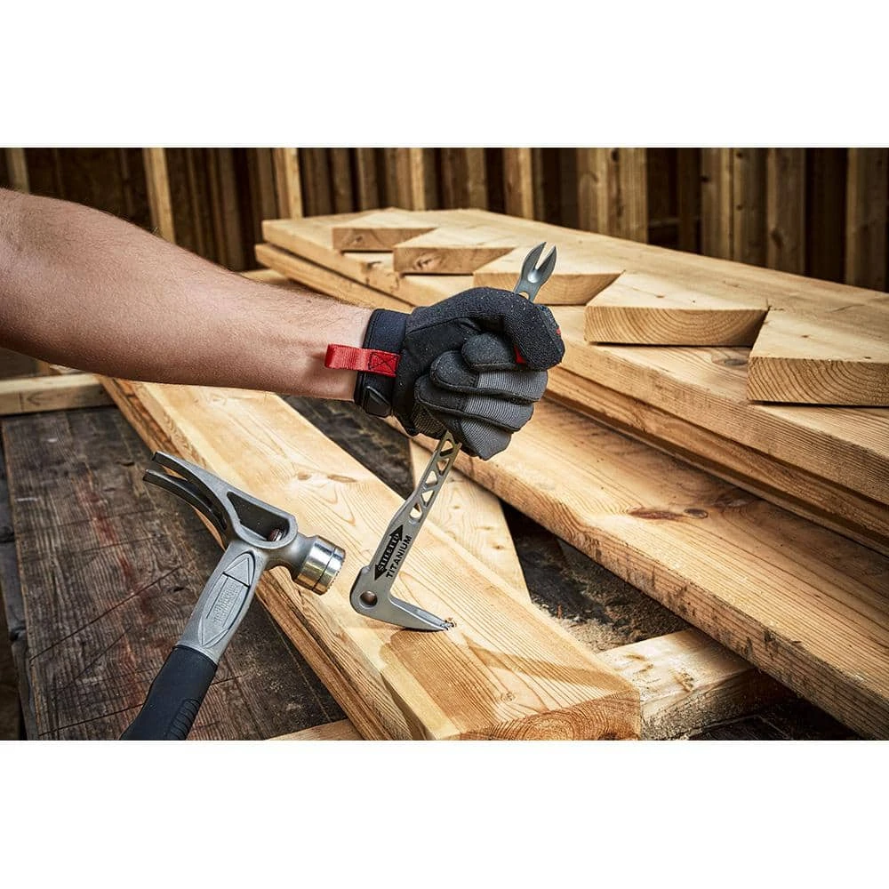 The STILETTO 12″ Titanium Dimpler Nail Puller includes the patented nail removal feature for pulling common nails easily. It is recommended for setting windows and doors, moderate prying, and scraping. This clawbar features a 180° side nail puller that allows you to pull 6D-16D nails with ease.