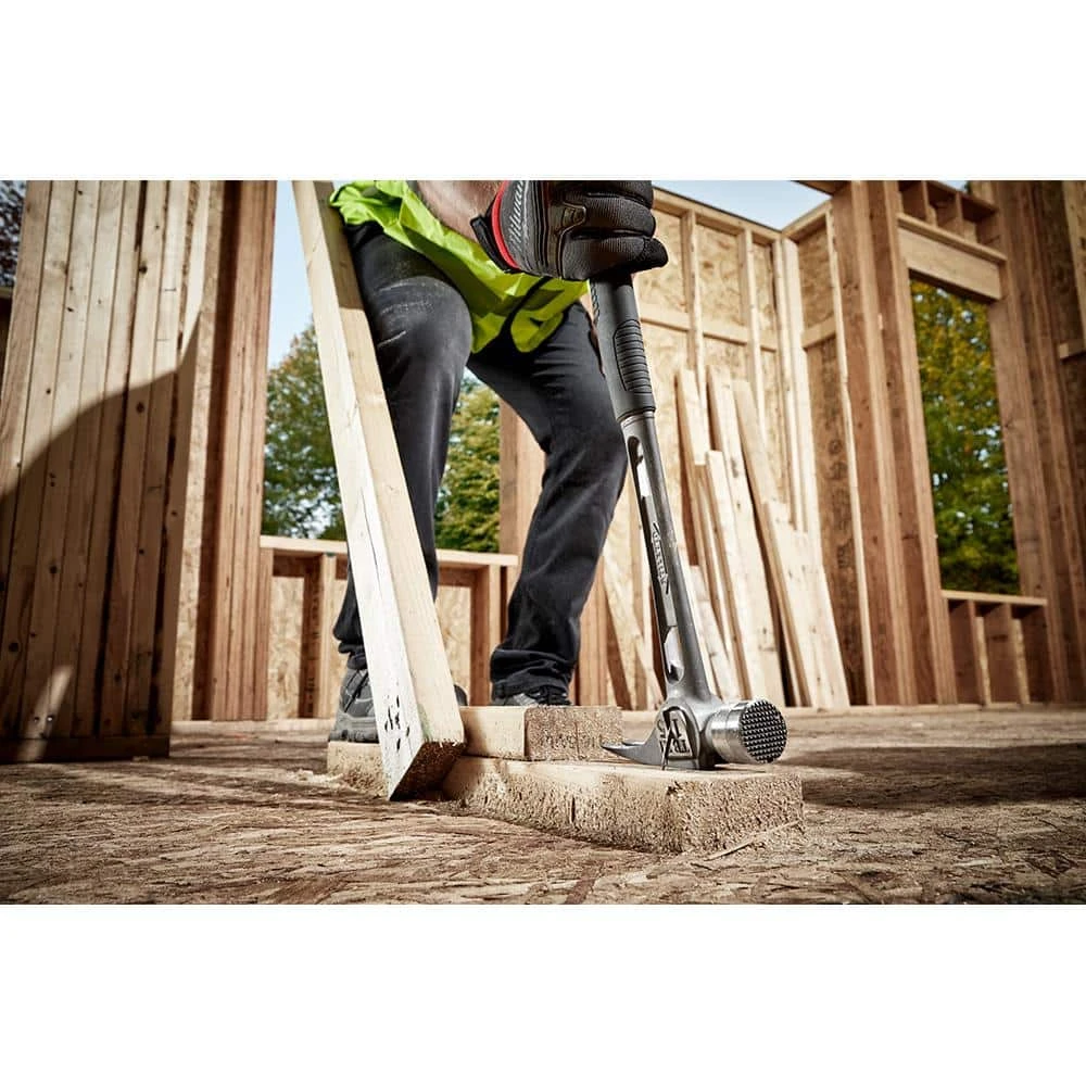 The Stiletto TB3MC is a 15 oz. Ti-Bone Milled Face Hammer with 18 in. Curved Handle. The Hammer has a Patented Side Nail Puller that eases 16p nails out with one 180° motion and Stiletto’s signature Magnetic Nail Starter. The TB3MC has the comparable striking force of 28 oz. Steel hammer and is recommended for Pole barn, Concrete, Framing and Remodeling. The TB3MC features a newly designed anti-rotational face and a also features a unique washer design that prevents the face from coming loose. The durable grip will not peel or crack. Stiletto Tool Company has been synonymous with high quality hand tools dating back to 1849. With its long history and strong reputation, the brand has evolved into the modern day standard for innovative, lightweight, ergonomic, productive and professional tools. We set the standard with our line of premium titanium hand tools that span numerous trades such as framing, remodeling, finish work, siding, demolition, concrete and drywall. Titanium is 45% lighter weight while providing the same striking force and strength as steel. Titanium tools also produce 10 times less recoil shock which helps reduce carpal tunnel syndrome. The combination of these features means less down time, more productivity and most importantly less pain while working.